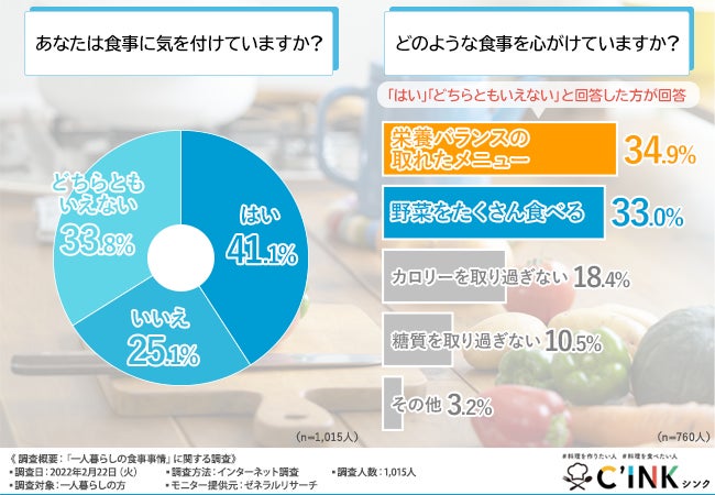 そこで今回、料理を作りたい人と料理を食べたい人のマッチングサイト「C'INK(シンク)」を運営している株式会社JUST PLAY COMPANYは、一人暮らしをしている方を対象に、「一人暮らしの食事事情」に関する調査を実施しました。