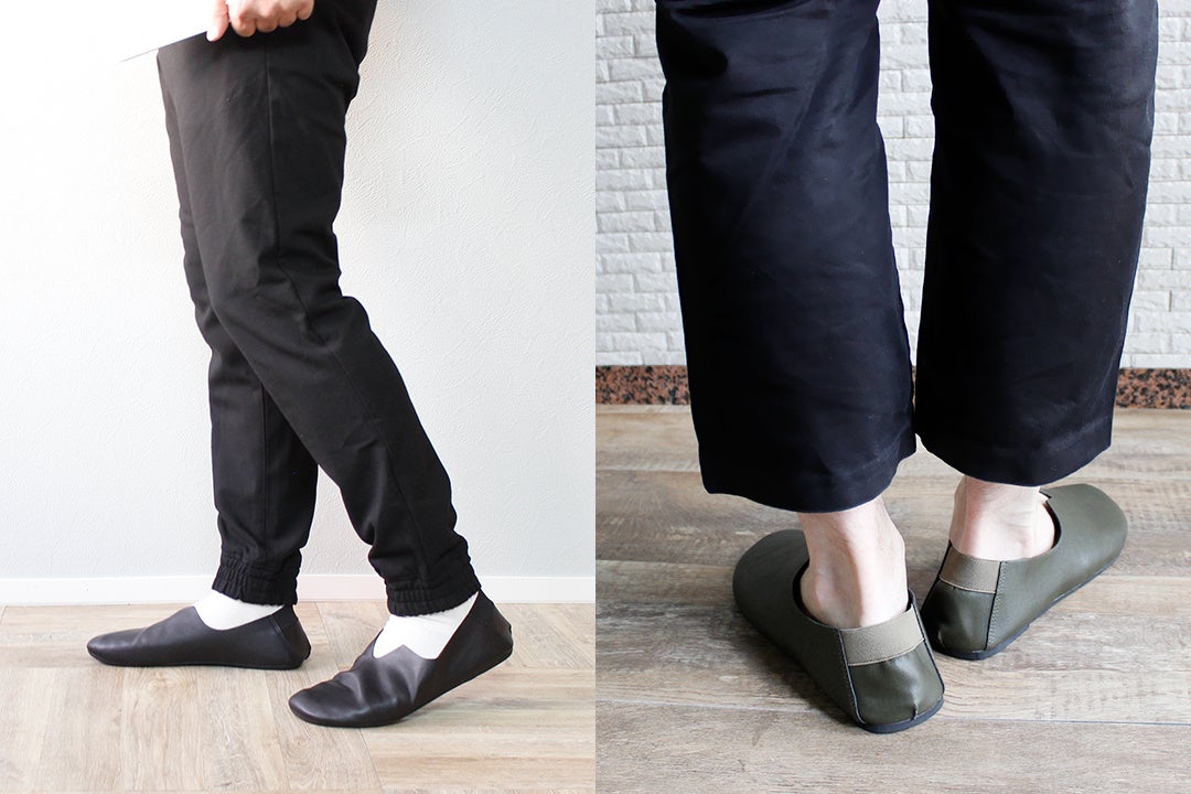 昨年発売した女性用折りたたみ携帯スリッポン「レ プリエ ノイエ」が好評につき、男性用も欲しいとのご意見を多数いただきました。そのご要望にお応えするべく、今年は男女兼用で履ける携帯スリッポンを開発いたしました。