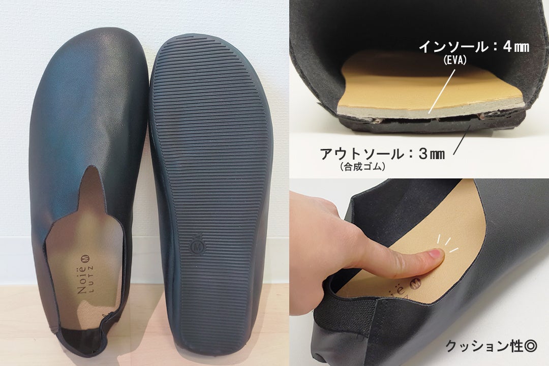 スリッパ特有のパタパタ音がなく、静かに歩けます。