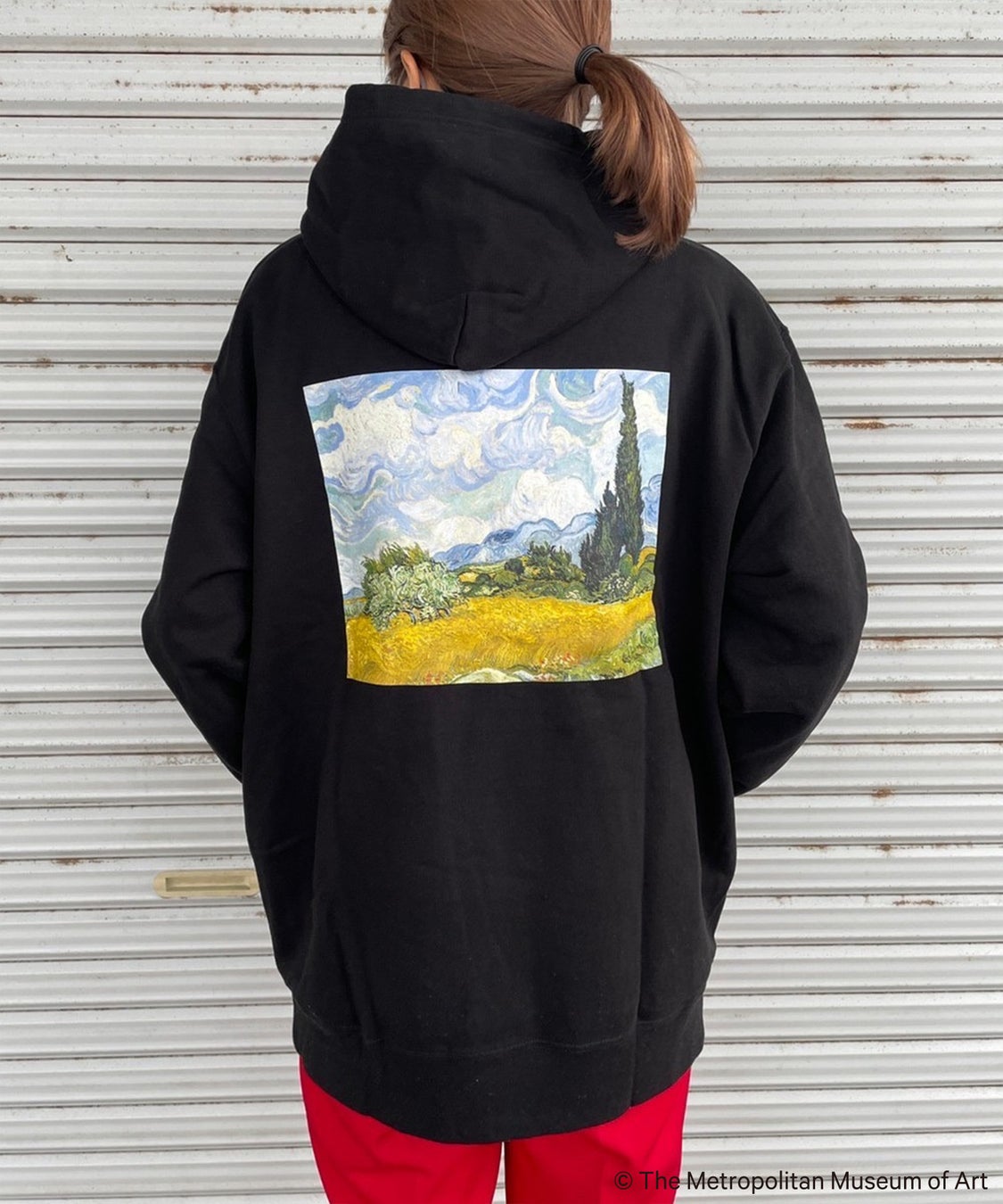 フロント部分にメトロポリタン美術館の「THE MET」のロゴをあしらい、バック部分にゴッホの「糸杉のある麦畑」がプリントされたユニセックスのパーカーです。