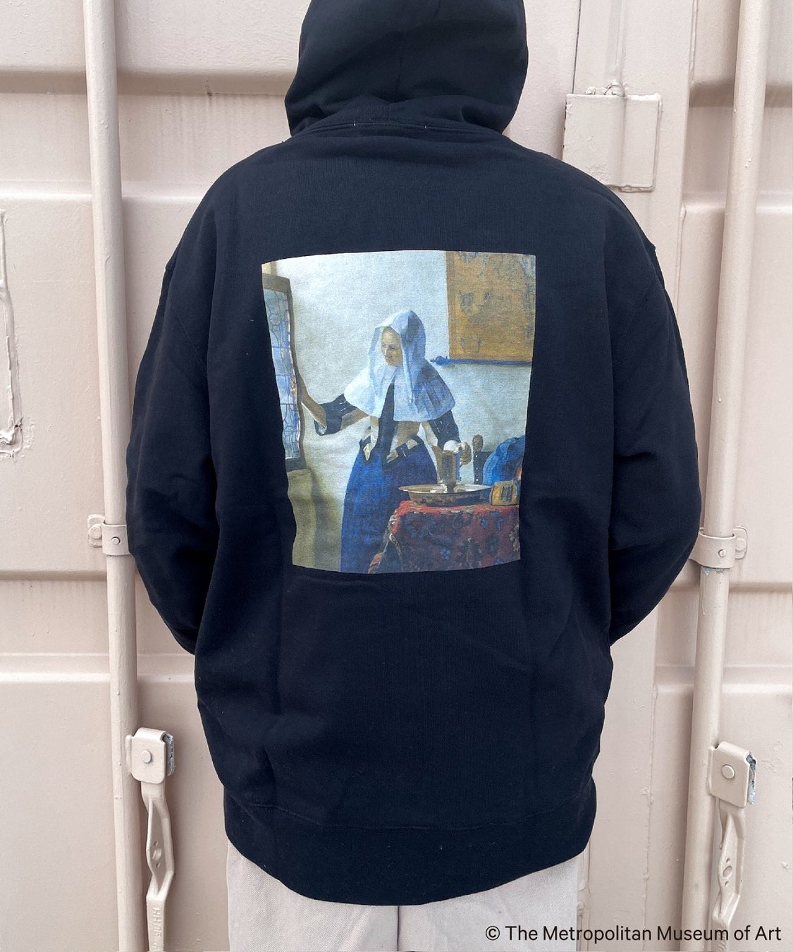 フロント部分にメトロポリタン美術館の「THE MET」のロゴをあしらい、バック部分にフェルメールの「水差しを持つ女」がプリントされたユニセックスパーカーです。