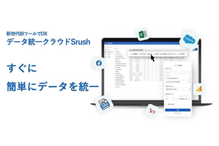 Srushは従来のBIツールと違い、だれでも簡単にデータの統一が可能となり、すぐに分析に着手できる新世代型のBIツールです。