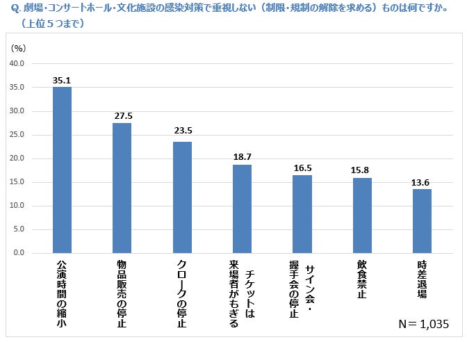 - 解除を求める感染対策、トップ3は「公演時間の縮小」「物品販売の停止」「クロークの停止」