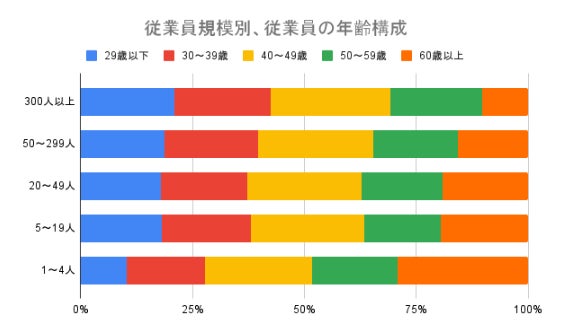 また、従業員規模が小さいほど、全従業員に占める60歳以上の従業者割合が高い(※3)ことも発表されており、中小企業の若手採用は急務です。
