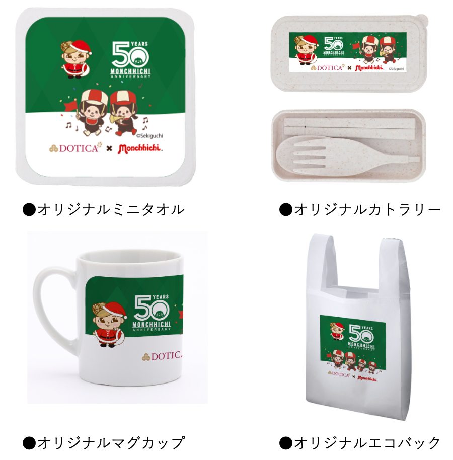 人気の家電から旅行のギフト券、モンチッチ50周年アイテムに加えてドーチカとモンチッチのコラボレーションオリジナルグッズが当たります。