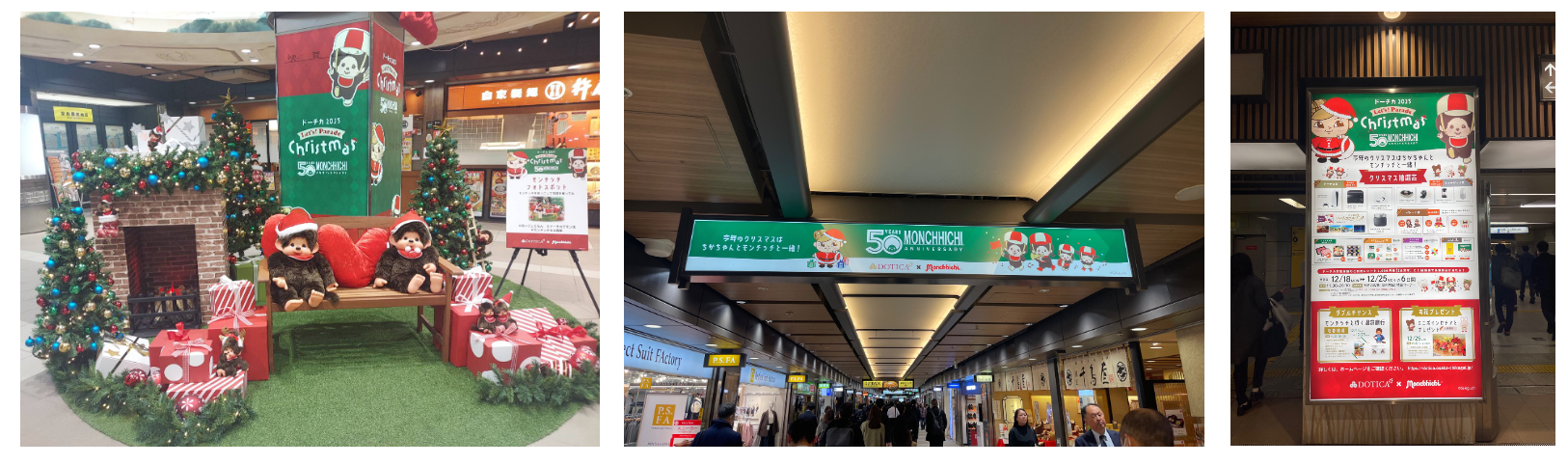 大阪・西梅田の地下街「ドーチカ」は、 株式会社セキグチ社から誕生し来年50周年を迎える「モンチッチ」とのコラボ企画「DOTICA×Monchhichi ドーチカ2023 レッツパレードクリスマス 」を、12月1日(金)から25日(月)まで開催しています。※クリスマス装飾は11月11日(日)より実施中。
