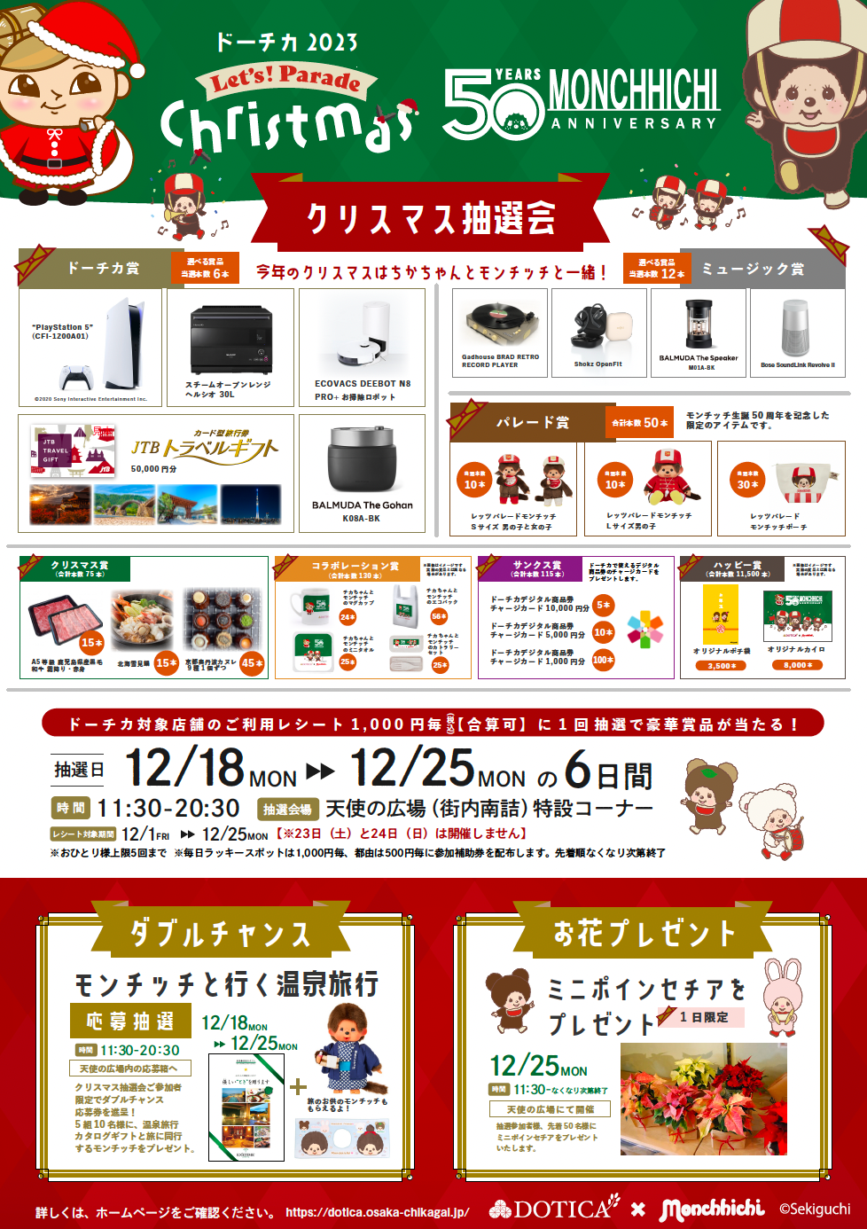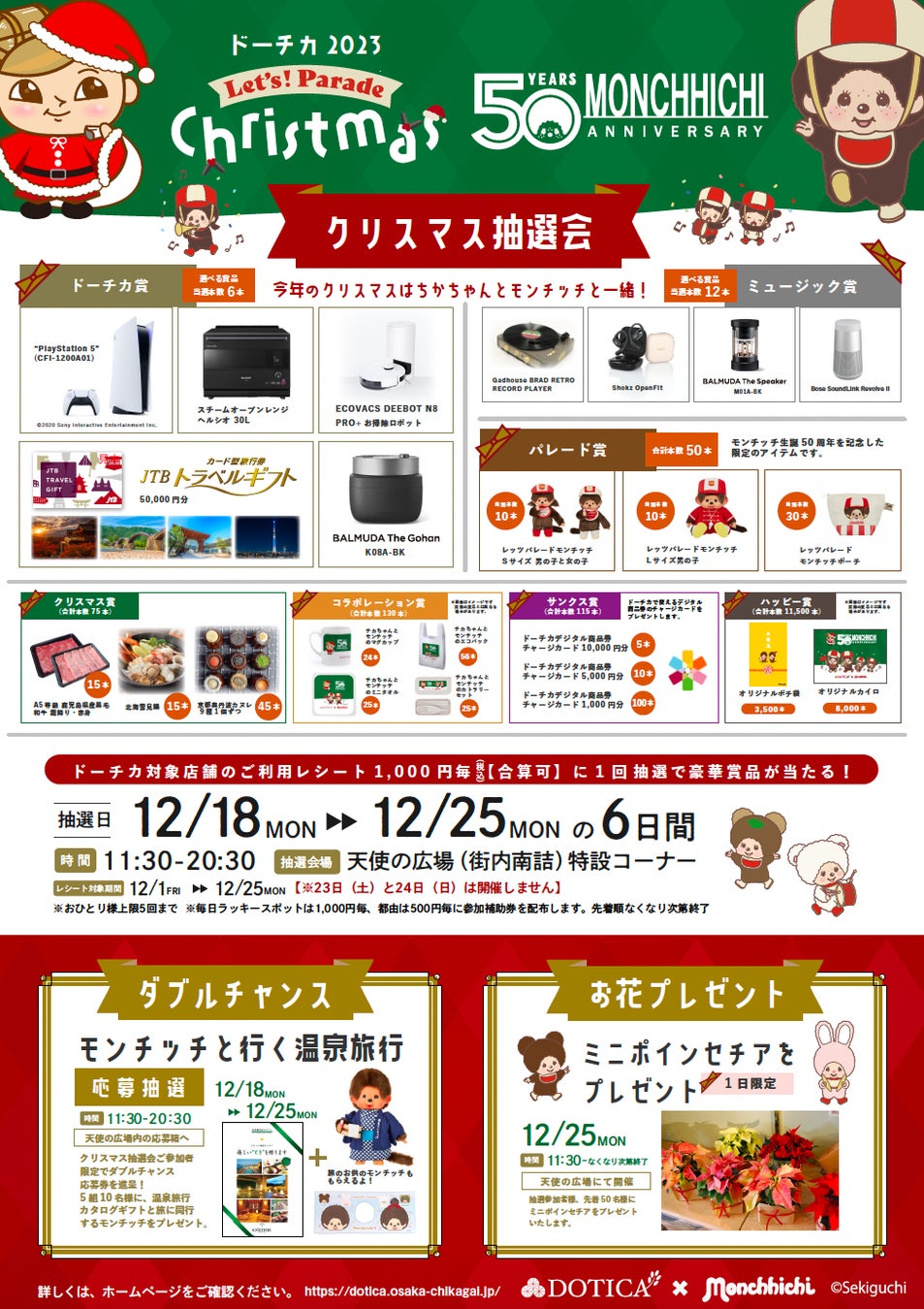 「 DOTICA×Monchhichi ドーチカ2023 レッツパレードクリスマス抽選会」 開催のご案内