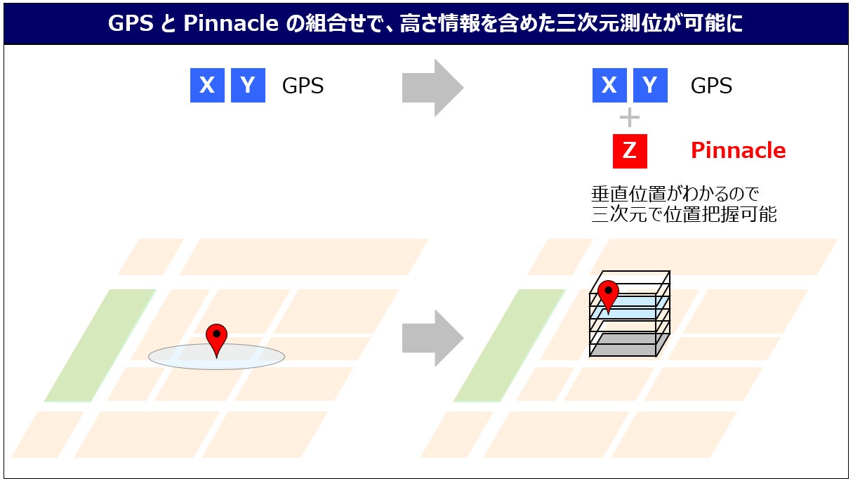 当社としては、今般のPinnacleサービスの提供をきっかけに、屋内でも、屋外でも、「高さも含めた位置がわかる」ことによる、新たなユーザー体験を創出し、新たな社会価値を創造してまいります。また、電波を活用した屋内/屋外をシームレスに測位可能な、三次元測位サービス(TerraPoiNT)の展開に向けた準備も続けており、更に価値を付加した高度な測位サービスを提供する計画です。