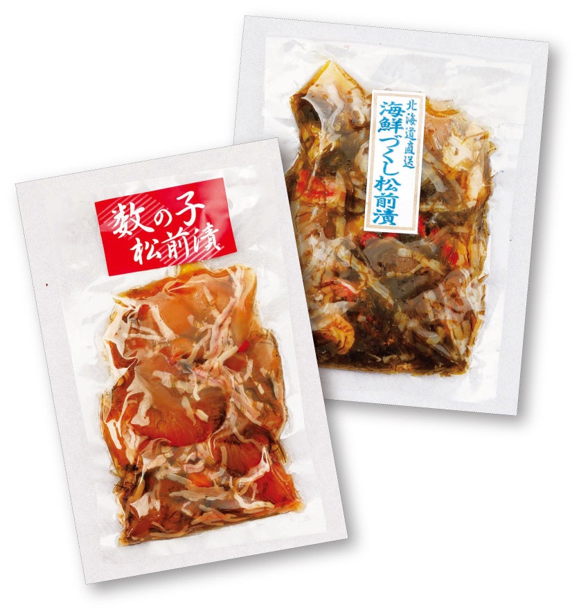 (「数の子70%入り松前漬」180g×1、「海鮮づくし松前漬」180g×1)