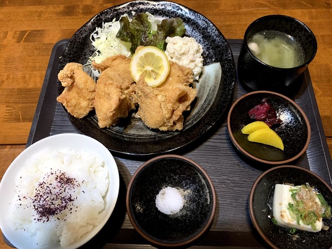 ご案内いたしております。(写真は当店大人気のから揚げ定食)