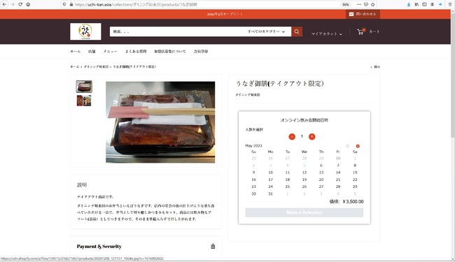 現在システムに登録している持ち帰りメニューは「ウナギ御膳」のみですが、新メニューを続々開発中なので、