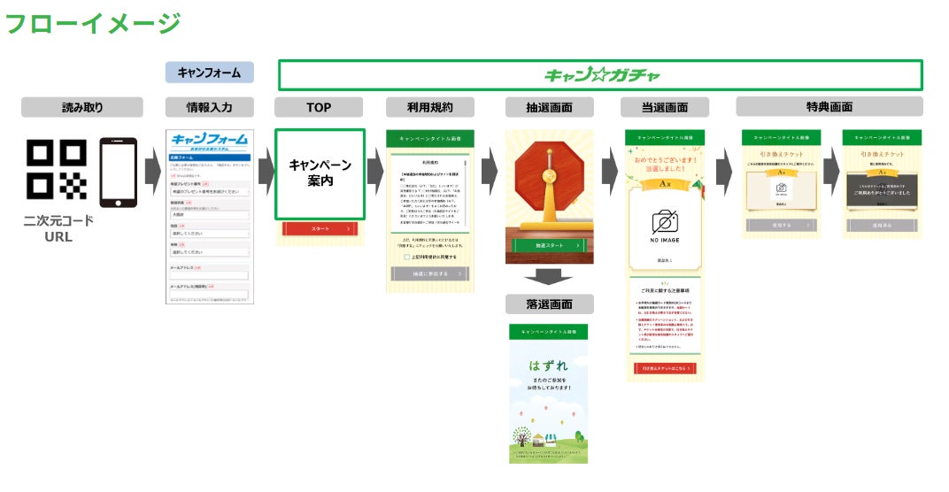 インスタントウィン参加の前後に、当社キャンフォームを組み合わせて利用できます。