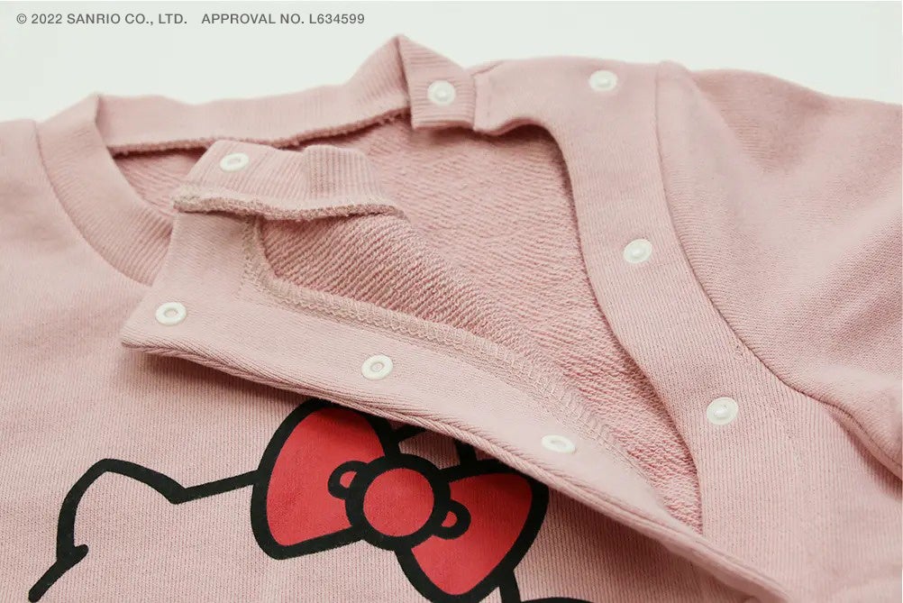 そこで、キャラクターシリーズ第1弾として「前開きキャラクタートレーナー」を開発しました。 子供服で人気の高い「ハローキティ」のデザインです。