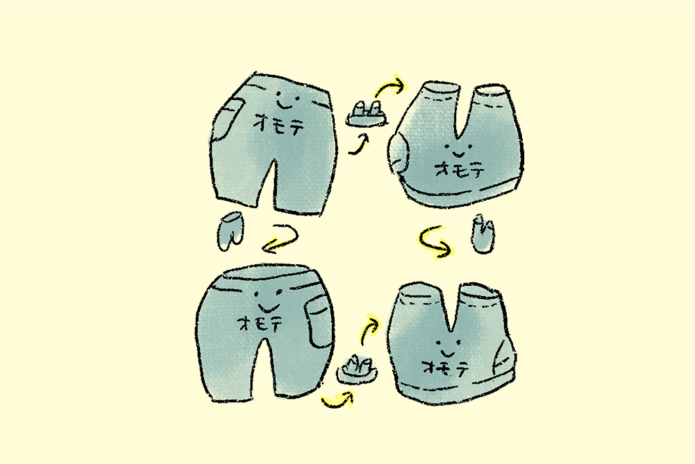 - 2:「ぜんぶおもて」改良版シェフパンツ
