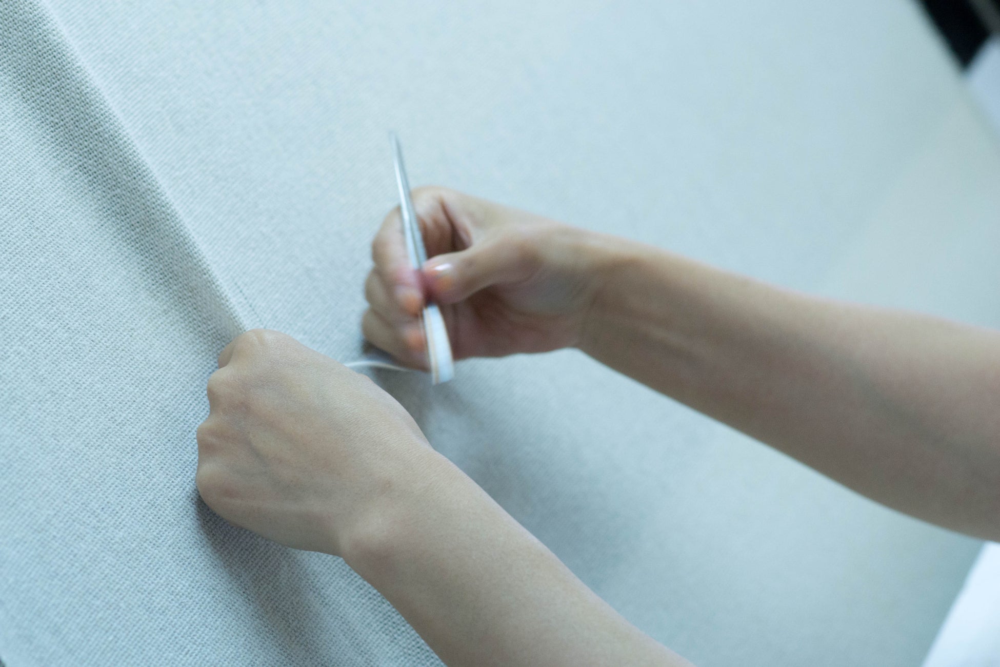 しかし現在、日本国内壁紙市場約7億㎡の中で、織物壁紙は約0.2%未満にまで減少しております。