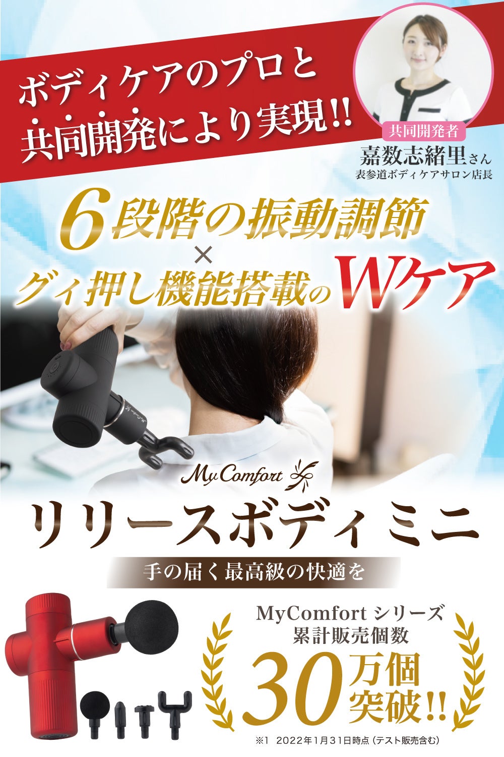 「リリースボディミニ」は、表参道にあるボディケアサロン嘉数店長との共同開発により実現された商品。