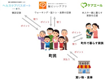 国の令和4年度第2次補正予算「デジタル田園都市国家構想交付金(デジタル実装タイプ)」の「マイナンバーカード横展開事例創出型(通称:TYPE-X)」の採択を受け、開発を進めてきた機能が、令和6年2月14日から順次リリースされます。デジ田交付金を活用して今年度実装されたヘルスケア関連のアプリと電子地域通貨アプリをデータ連携基盤に接続し、ヘルスケア関連のアプリの利用に応じて、電子地域通貨アプリのポイントを付与する仕組みが実装されます。町民の健康づくりにつながる活動を応援し、町民同士支え合いながら、心身ともに豊かに暮らせる地域づくりに寄与することを目指します。