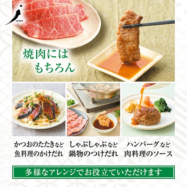 焼肉はもちろん、お肉料理・お魚・鍋ものなどのつけだれ、かけとして幅広くお使いいただけます。