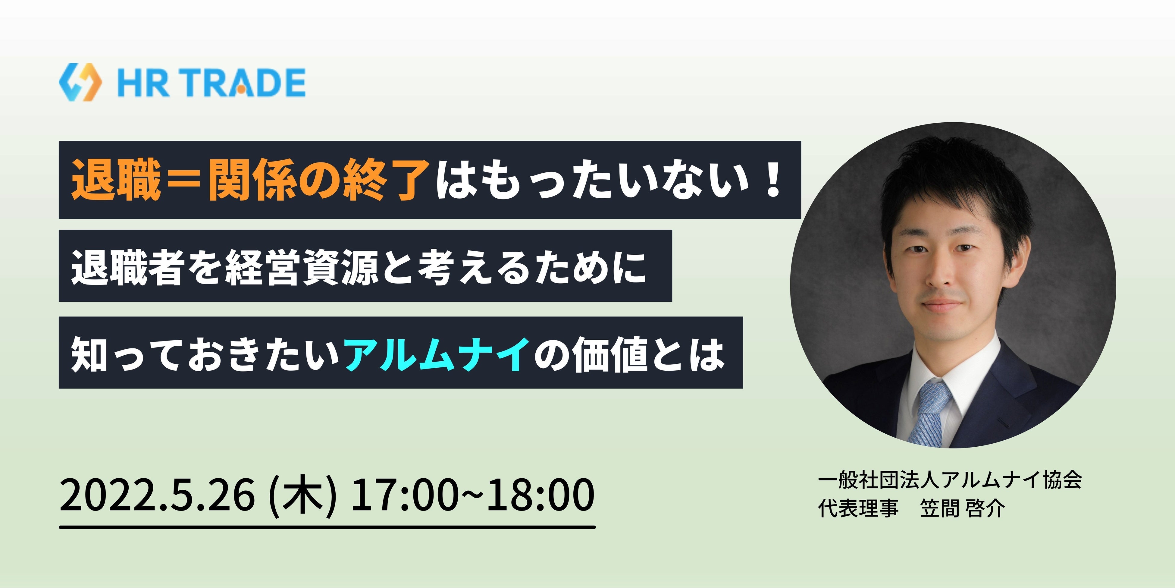 「退職=関係の終了」はもったいない! 退職者を経営資源として考えるために知っておきたい“アルムナイ”の価値とは【5/26(木) 無料オンラインセミナー】
