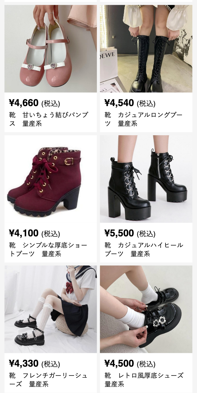 量産型の服だけでなく、リュックや靴など量産型ファッションに欠かせない小物も販売しております。