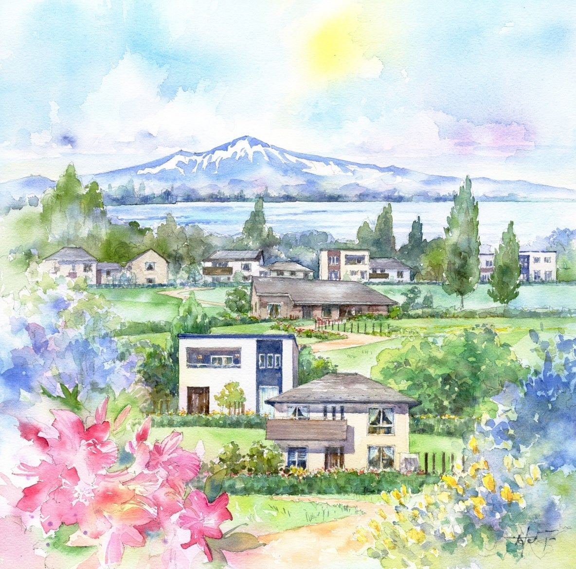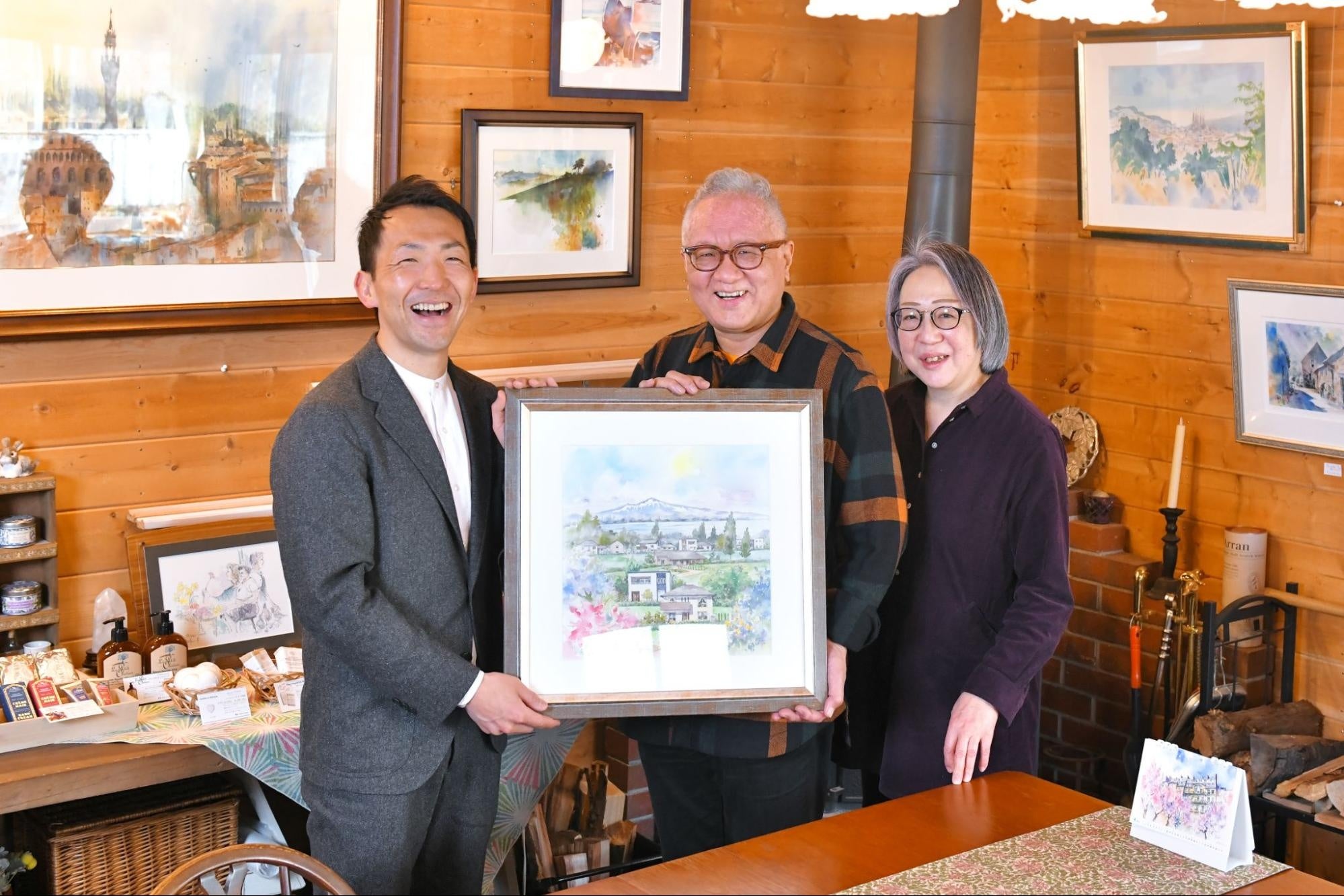 実在する風景をもとに描かれた幻想的な水彩画は、見る人の心の中にある原風景を思い起こさせます。まさに「東北ふるさと体験」を彩るアートにふさわしいことから古山氏の絵を採用しました。