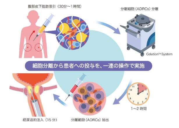 従来の幹細胞治療では、患者から採取した細胞を専用施設で数週間から数ヶ月かけて培養する必要があり、高額な費用と長期間の待機時間が患者にとって大きな負担となっていました。しかし、ADRセラピューティクスが開発した革新的な「セルーションシステム」では、患者の脂肪組織から採取した非培養脂肪組織由来再生(幹)細胞(ADRCs)を、わずか90分で治療に必要な状態まで精製し、採取したその日のうちに患者への投与が可能となります。