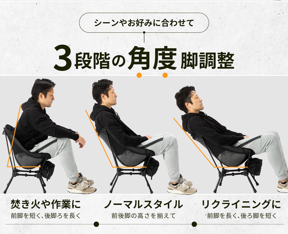 ・【焚き火・作業スタイル】前脚を短く、後ろ脚を長く