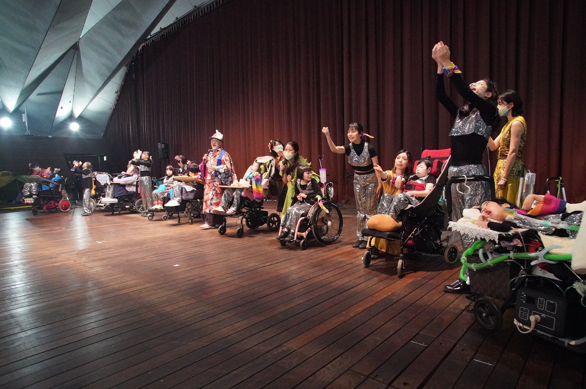 子ども達それぞれに、疾患が違います。余命宣告を受け死の恐怖と日々闘っている子や進行性の難病の子もいます。多くの子ども達が、とても重たい病気や障がいを抱え、全介助の生活を送っていますが、彼らはパフォーマーとしての誇りを持ってステージに立っています。表現をする事で命を輝かせ多くの方に勇気を与えています。このチームの最大の特徴は「自分の意思で参加すること」。意思を伝える事が難しい子ども達も、目線入力や口をパクパクさせるなど様々な方法で伝え、強い想いを持ってパフォーマーとして活動を行っています。子ども達それぞれに合わせた、課題(ハードル)を課しそれを乗り越え「自信」「自己肯定感をあげる」「成功体験」を積み重ねています。今では子ども達同士が自然と切磋琢磨し、導く立場の私たちがびっくりするほどの向上心で進んでくれています。与えられるばかりでなく、自分が与える側に立つ子ども達です。