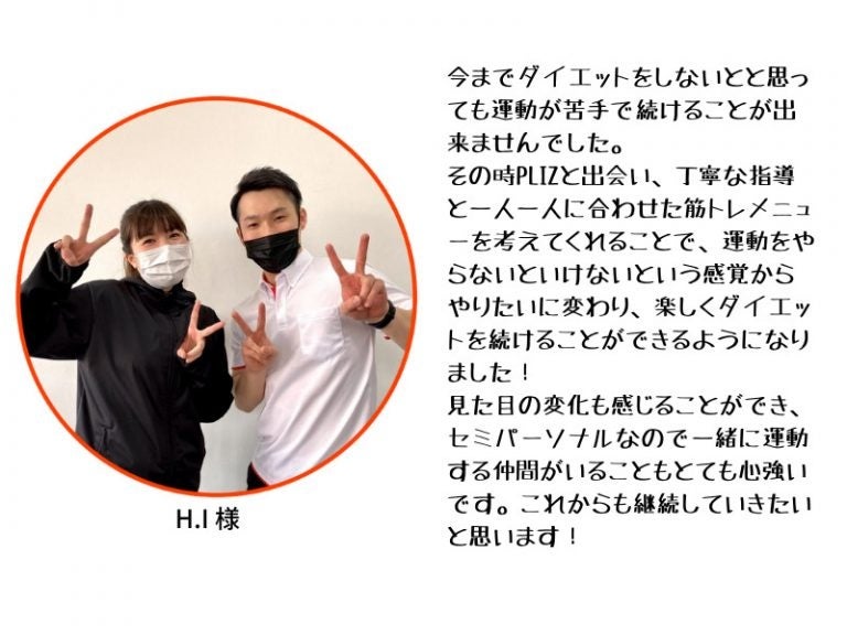 またPLIZでは、適切な運動習慣や食事習慣を指導させていただき、リバウンドをしないための体づくりを行います。