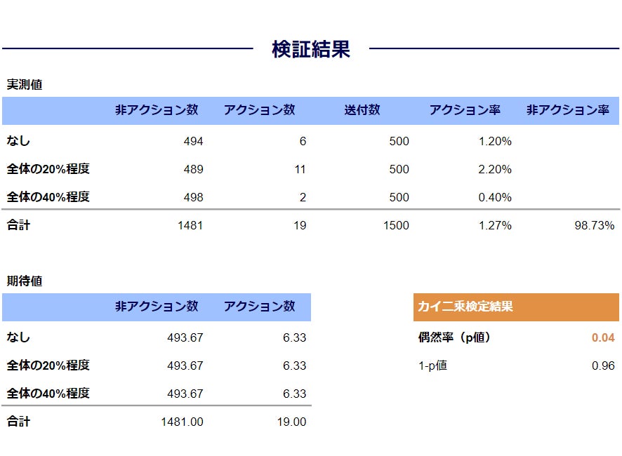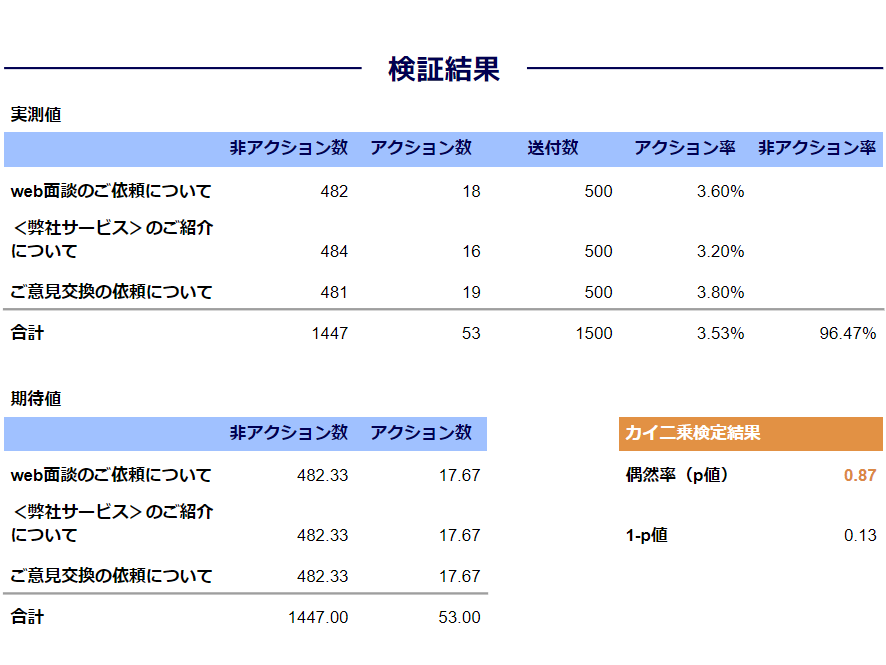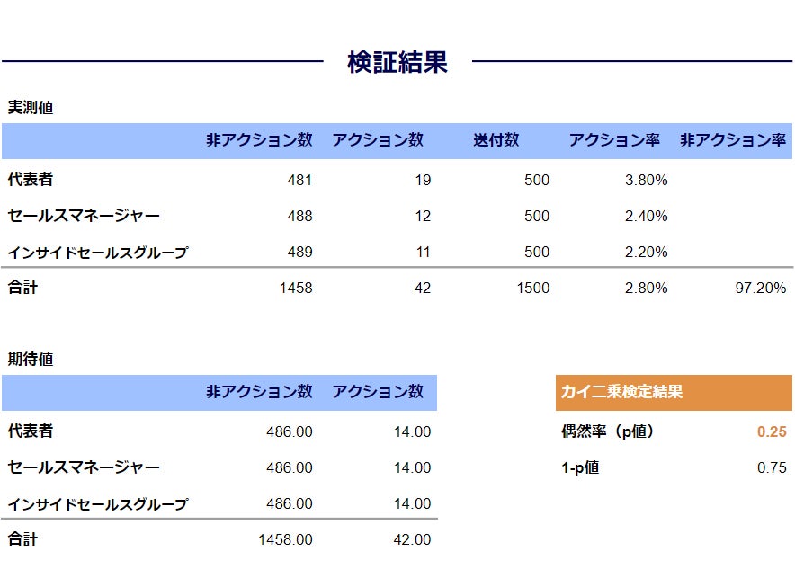 ※各検証においてp値(偶然率)が0.05未満の場合に限り、その検証が統計的に信頼できるものと結論付けます。