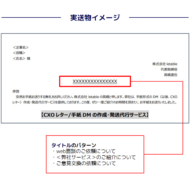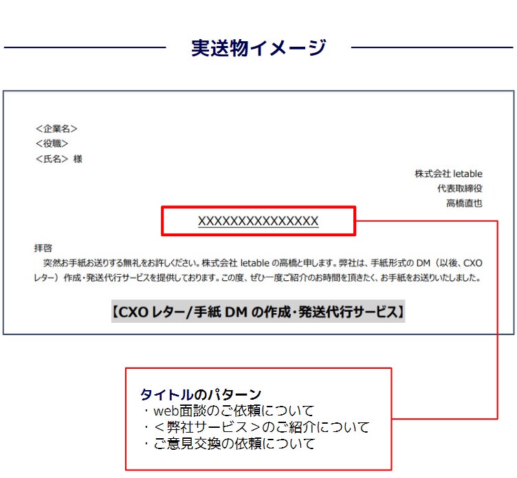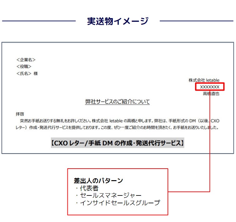 ・自社商材であるCXOレターの作成/発送代行サービス「letable」