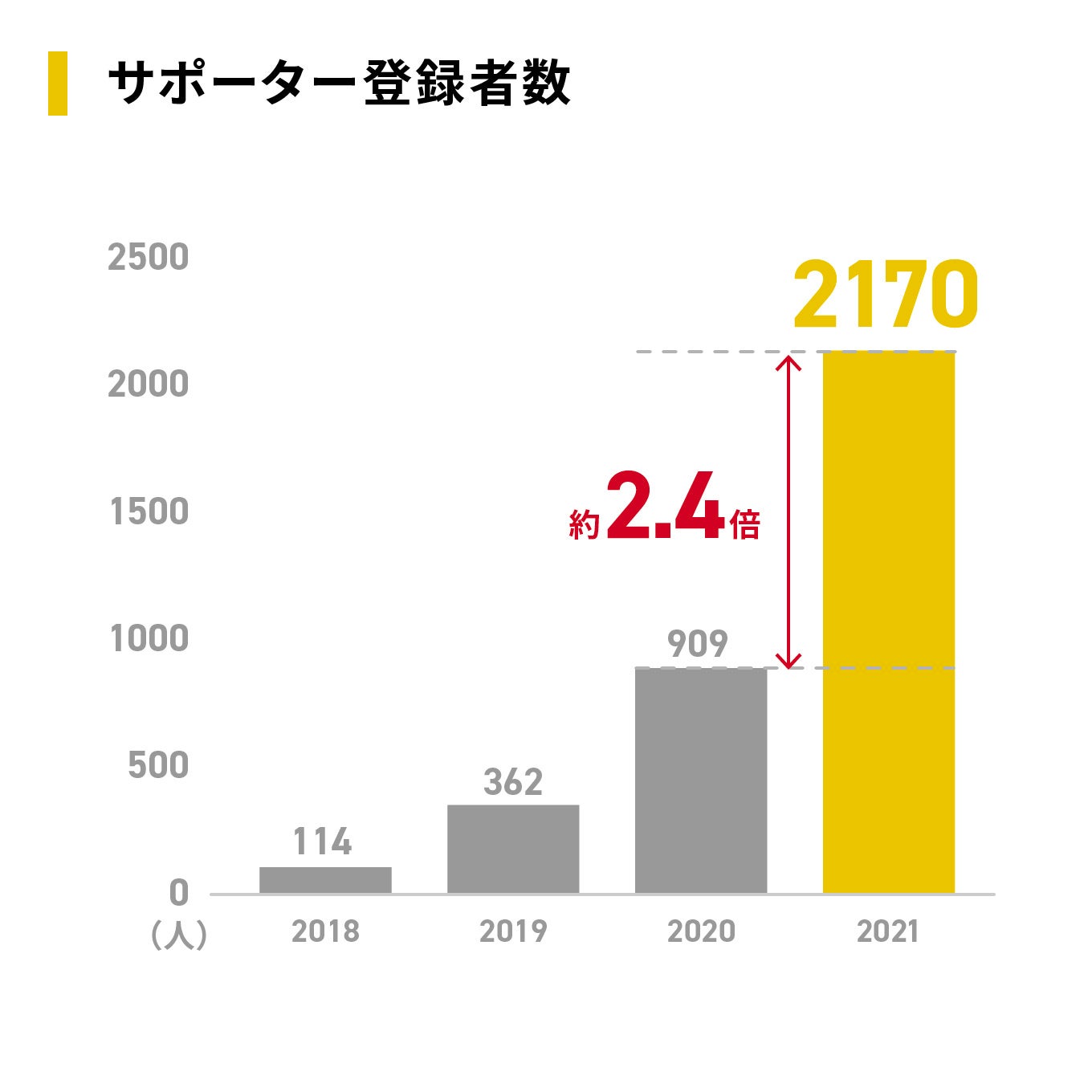 登録サポーター約2,000人のうち、2021年に契約した方々は半数にのぼります。この1年で増加率は240%。背景には「聴くこと」への関心の高まりがあります。