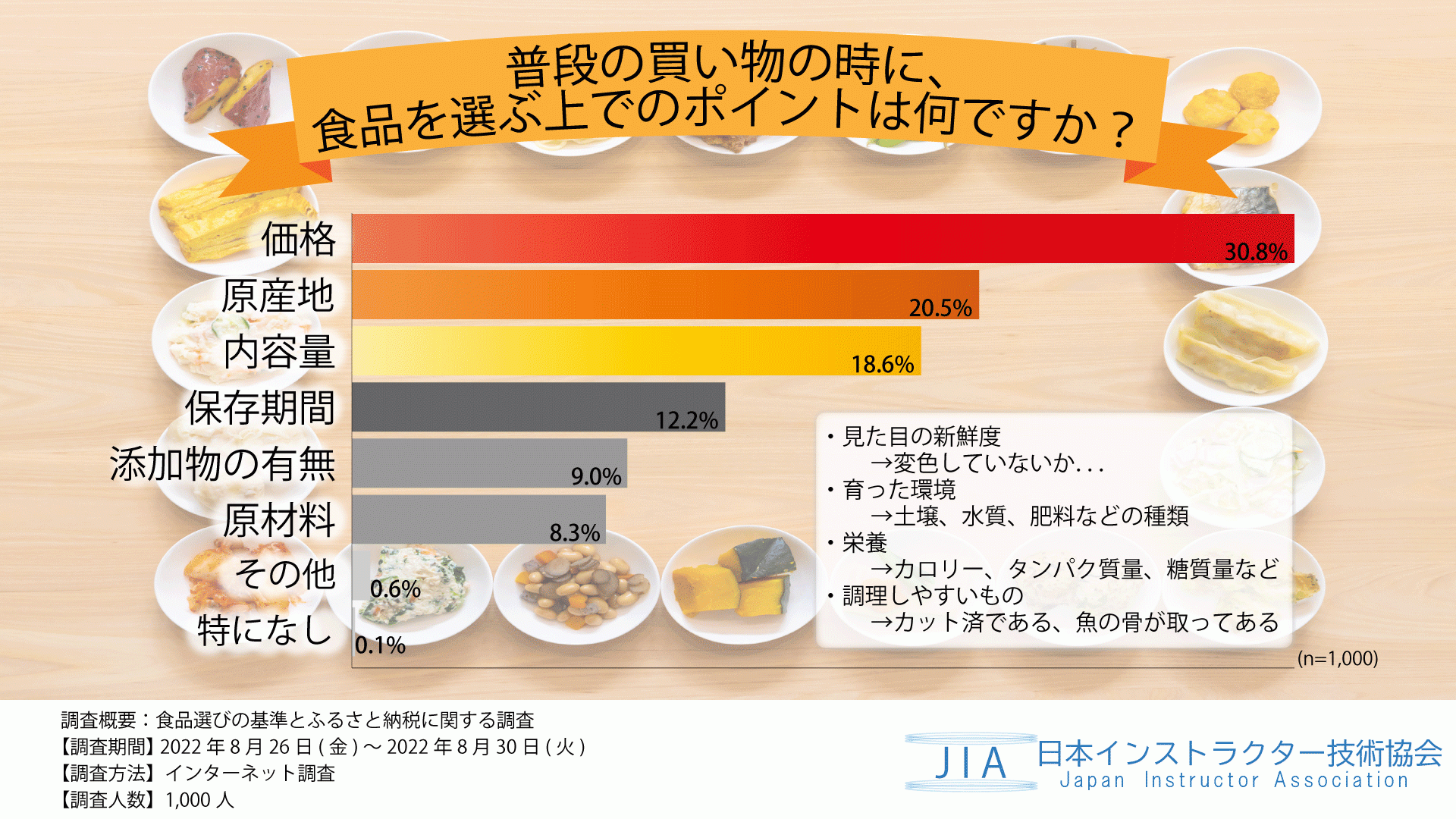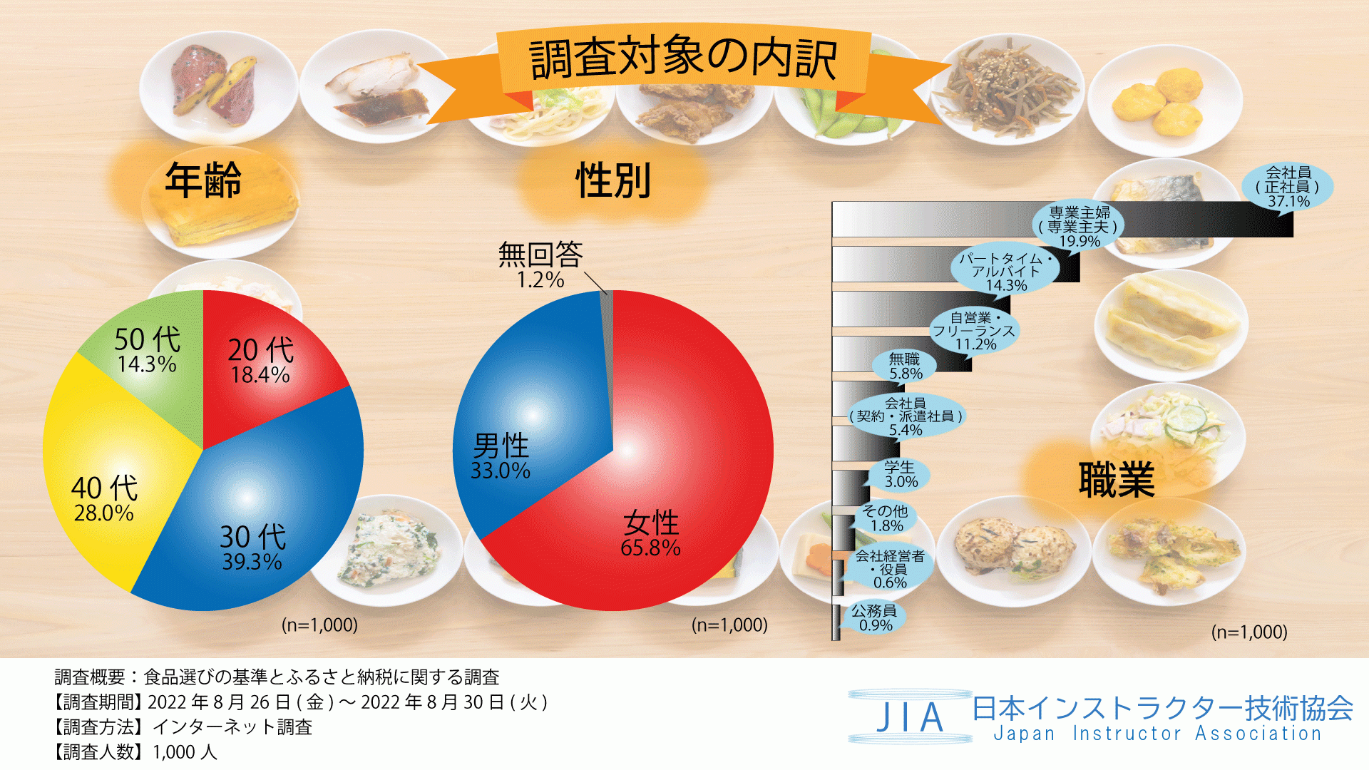 そこで今回、日本インストラクター技術協会(https://www.jpinstructor.org/)は、20代~50代の男女を対象に、「食品選びの基準とふるさと納税」に関する調査を実施しました。