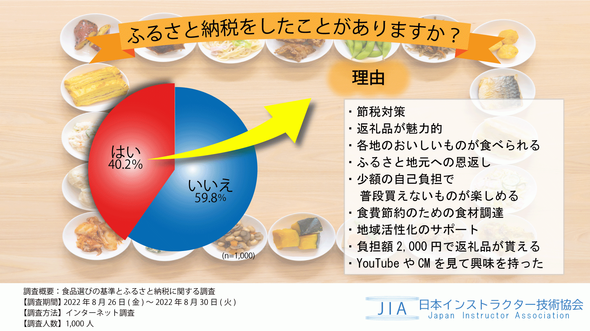 【日本インストラクター技術協会】ふるさと納税で地方のおいしい特産品が自宅で食べられる!食品を選ぶ時に注目しているポイントを徹底調査!!