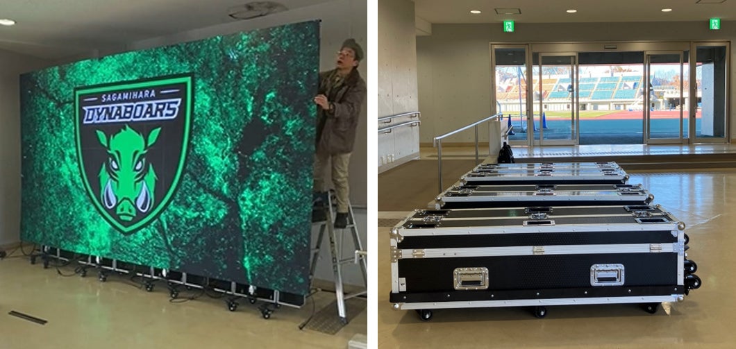 ジャパンラグビーリーグワン開幕戦「三菱重工相模原ダイナボアーズ VS 浦安D-Rocks」で、相模原ギオンスタジアム内VIPルームのモニターとしてご利用いただきました。「風帆 EP-225」を4台連結した181インチモニターで観る選手の映像は圧巻の大迫力でお客様には驚きと共にご満足いただきました。