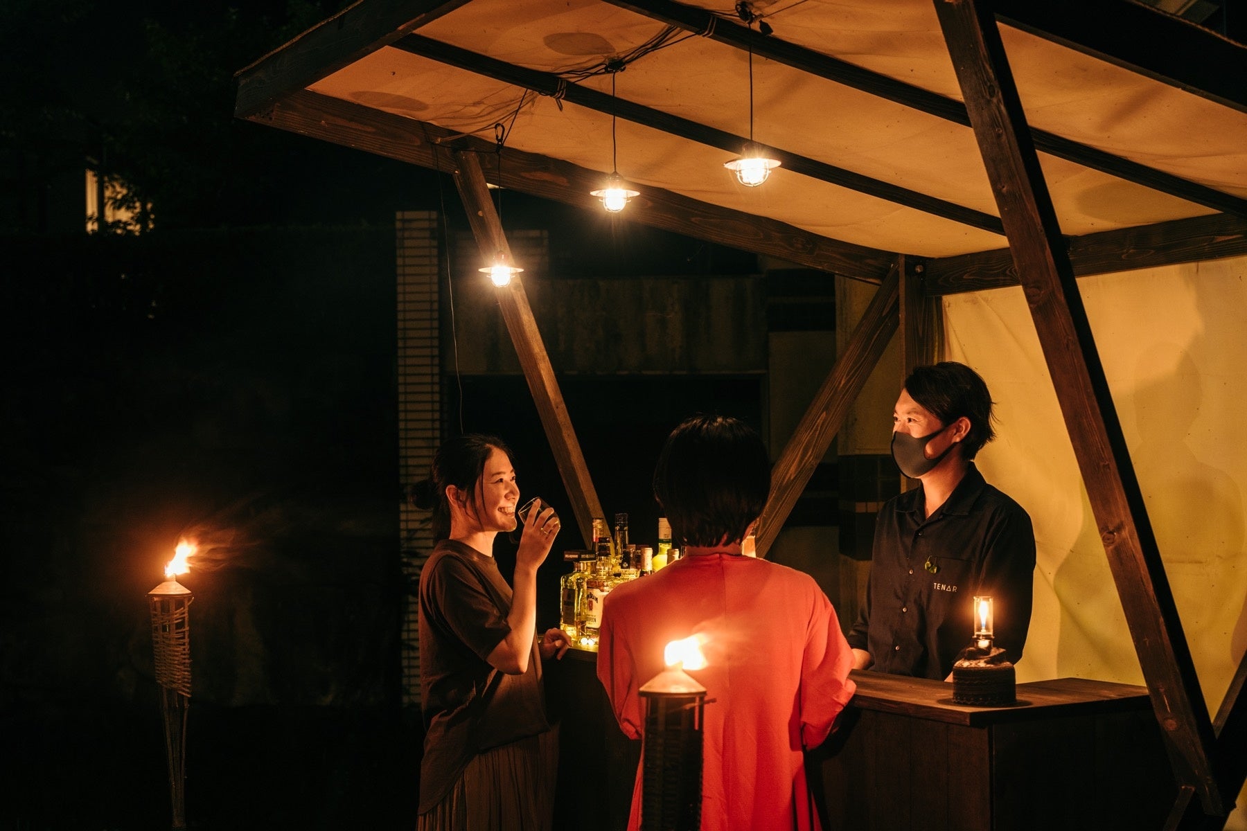 焚き火を囲みながらお酒を楽しめる宿泊者限定のアウトドアバー。
