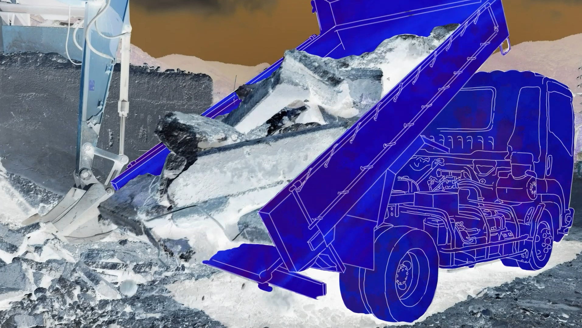 A:手を抜かずに緻密に重機を再現し、色使いなど非現実的に仕上げたました。迫力あるロトスコープはあまり例がないと思うのでダイナミックな感じが伝われば嬉しいです。