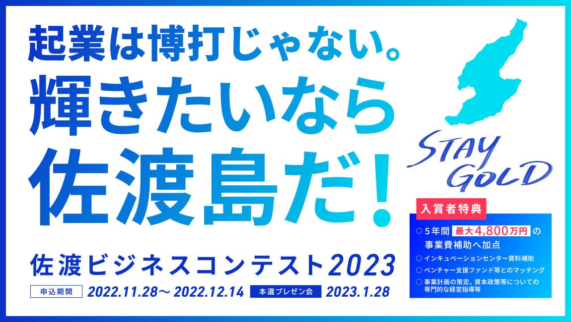 なお、申込期間は12月14日(水)まで。詳しくは「佐渡ビジネスコンテスト2023」のサイトをご覧ください。