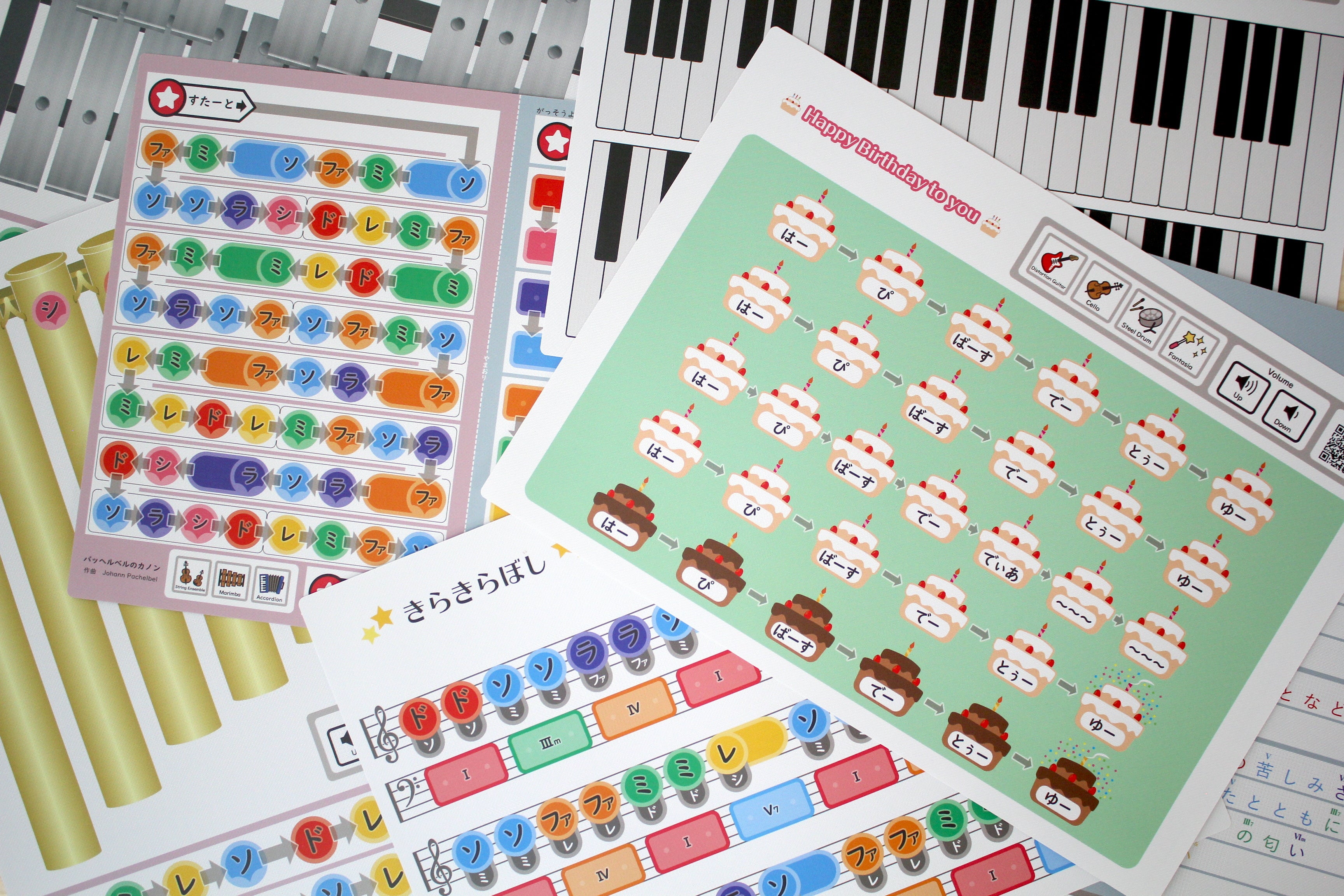 - 音楽の仕組みが見える、新開発の専用楽譜「ラタノーツ」。