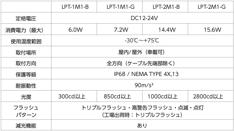 LPT-1M1-B・LPT-1M1-G・LPT-2M1-B・LPT-2M1-G