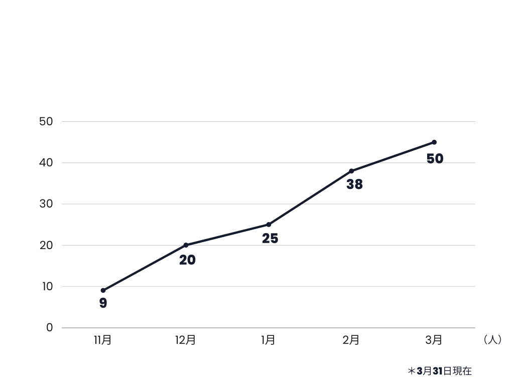 Gokalab.を活用している会員を、研究員と名付けています。研究員になるためにワークショップに参加し、それぞれが「自分にとって『はたらくがひろがる』とは」「Gokalab.での研究テーマ」をレポートにまとめ共有。2023年3月には研究員登録者数が50名を突破しました。