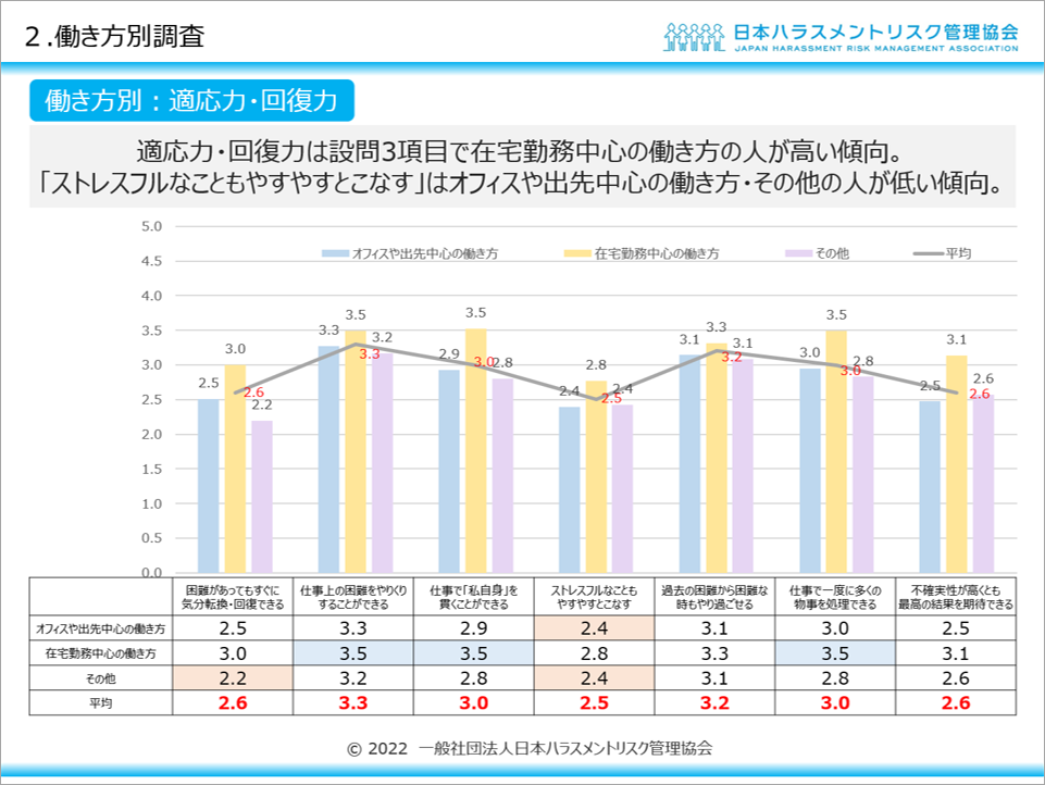 ・一般社団法人日本ハラスメントリスク管理協会「職場のストレス対応力調査」2022