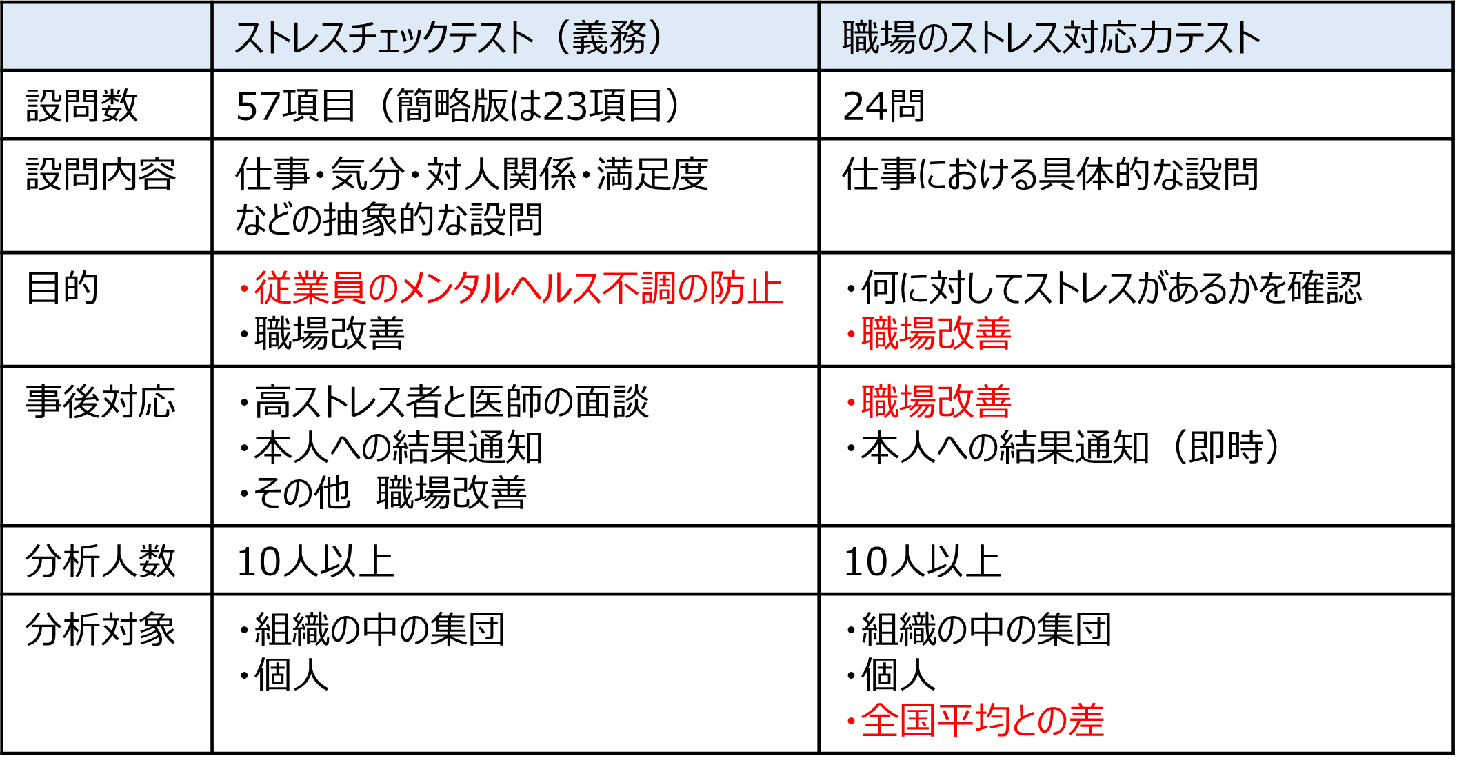 当協会のテストは、主に職場改善を目的にしており、組織の傾向を全国平均との差で比較することが可能です。