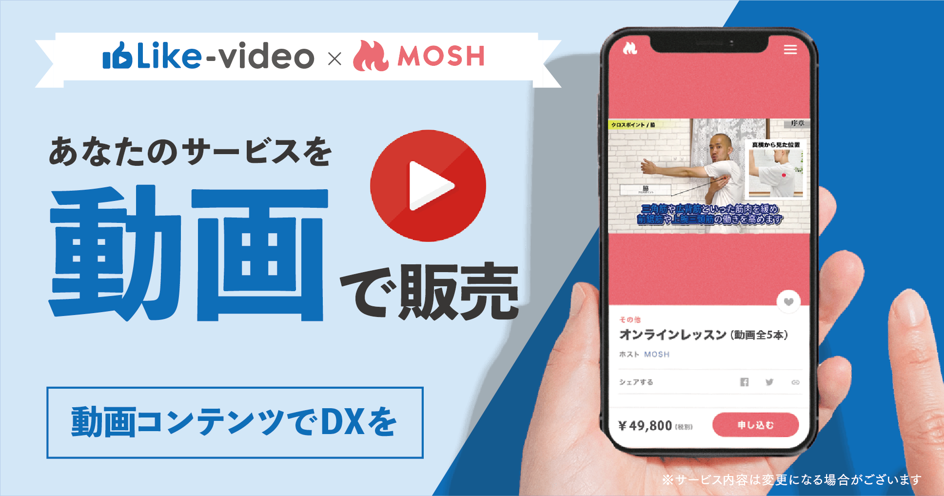 この度、 予約機能や決済機能のついた個人サイトを簡単に作れるサービス『MOSH』( https://mosh.jp/) の一部に『LikeVideo』の動画制作サービスを展開を目指して検証を開始しました。