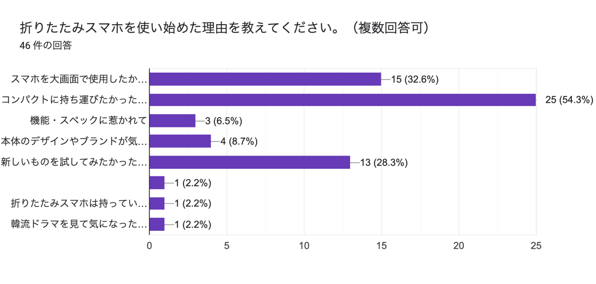 一方で、折りたたみスマホを所有している人、46名にもアンケートを実施しました。