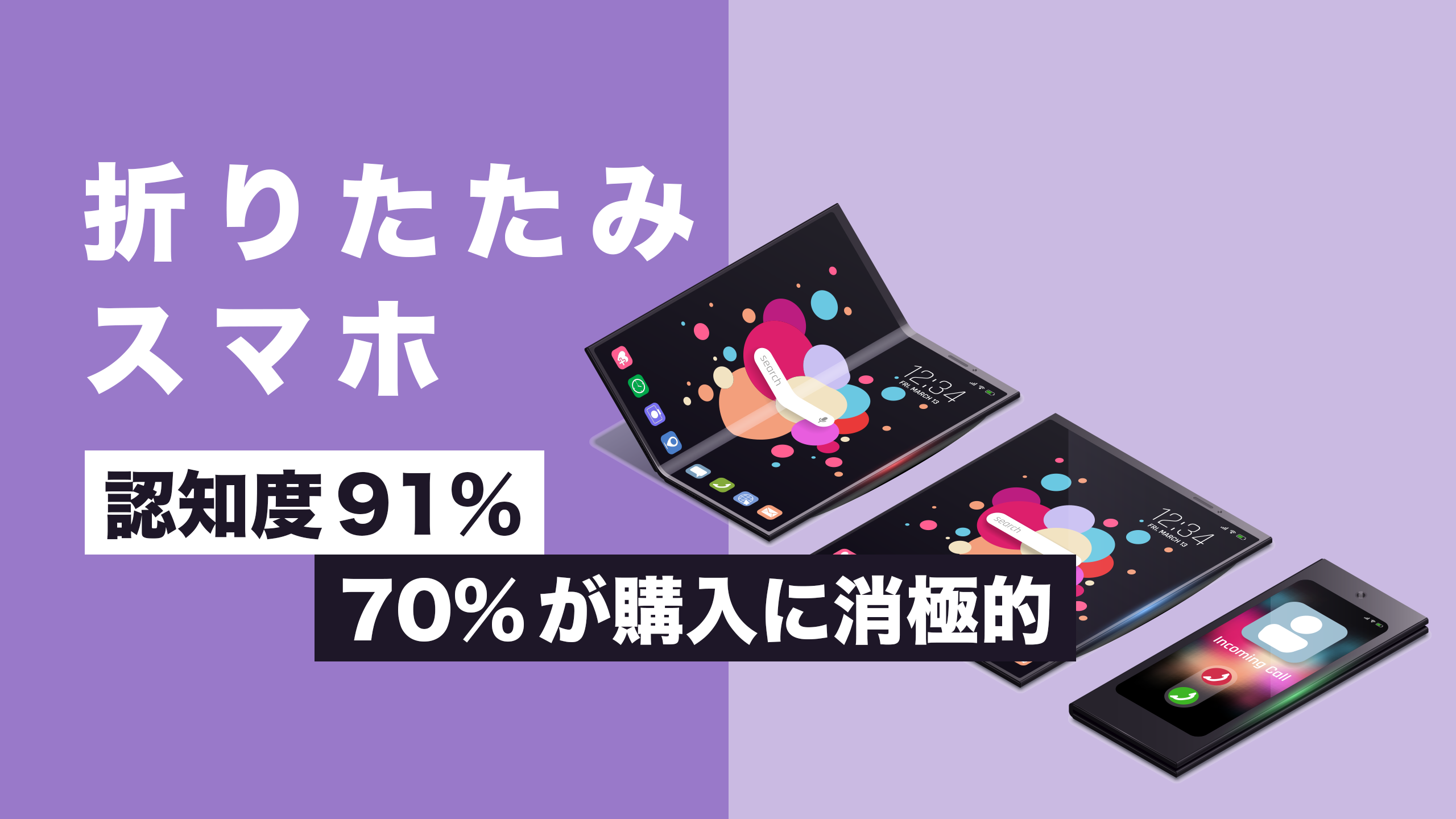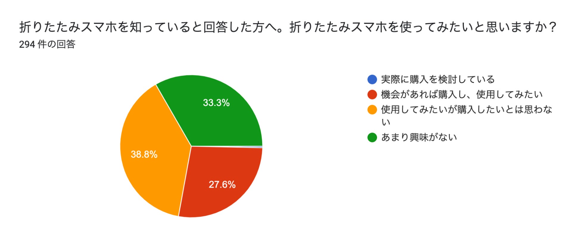 特に、まだ折りたたみスマホを持っていない人に「購入したい」と答える人がほとんどいないという結果も顕著でした。