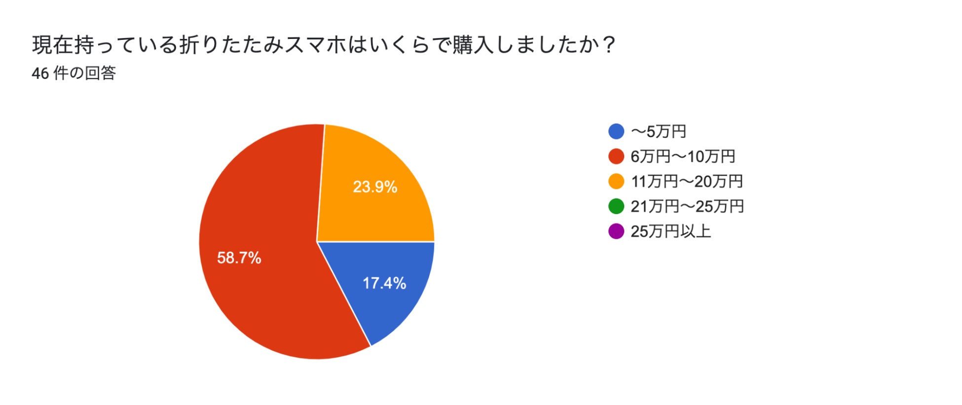 「折りたたみスマホの価格」を調査したところ、約76%の人が10万円以下という結果になりました。