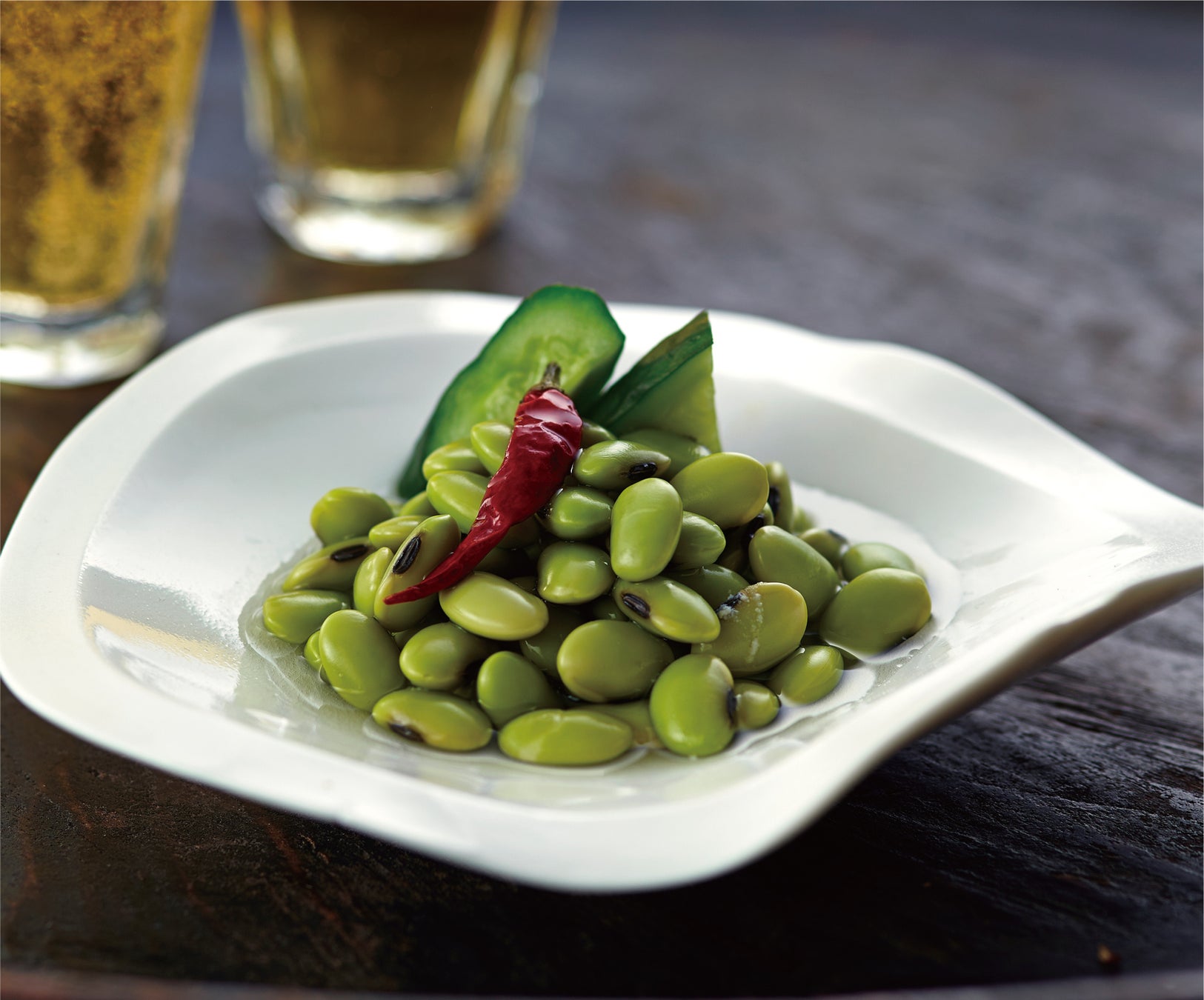 栄養満点、希少な青大豆をあっさり浅漬にした「豆涼み」は、ビールのお供に最適です。