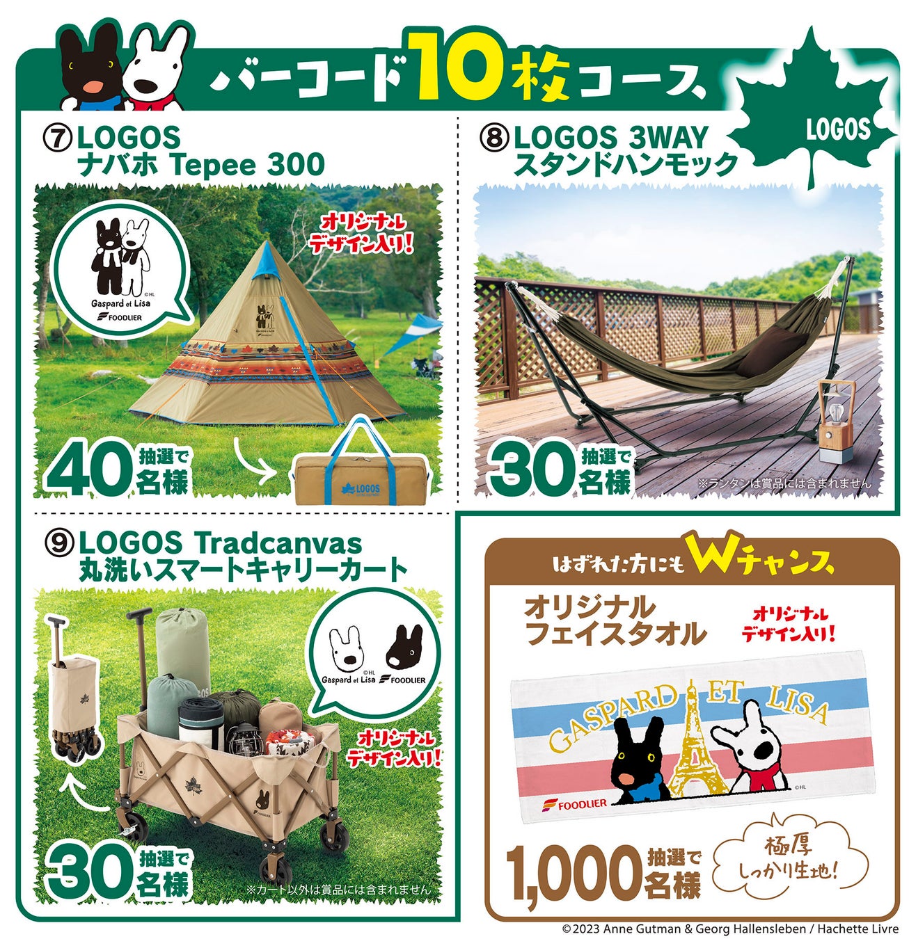 株式会社フードリエ(本社:栃木県那須塩原市、代表取締役社長:内田 達也)は、2023年4月1日(土)~6月30日(金)までの期間、キャンプで使えるロゴスグッズ&『リサとガスパール』グッズが合計2000名様に当たる