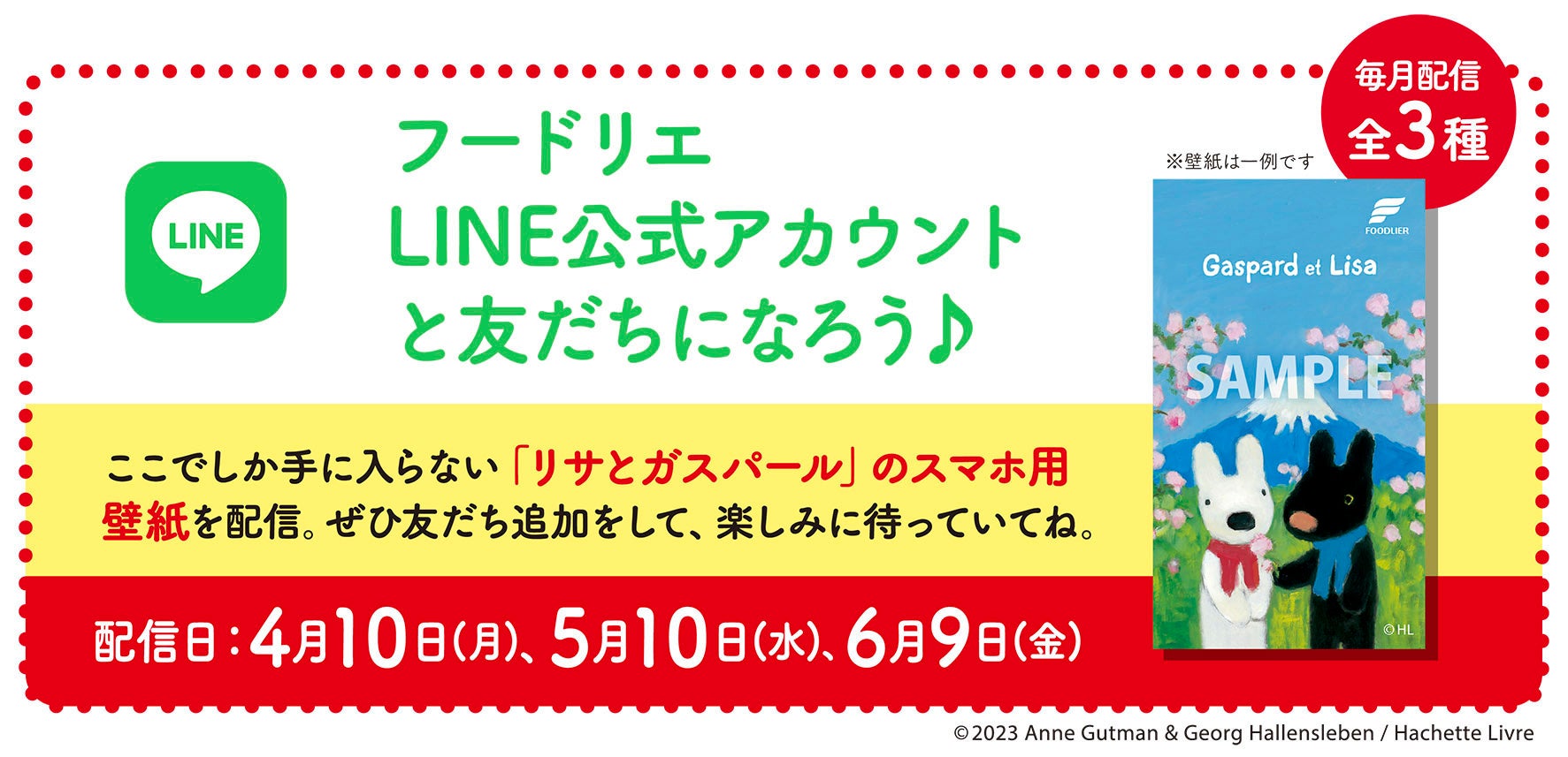 また、LINEの友だち限定で、『リサとガスパール』のスマホ用壁紙の配信を予定しています。